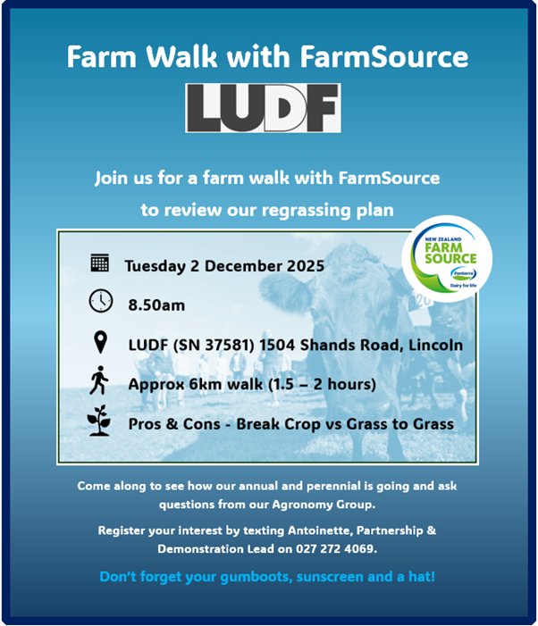 Lincoln University Dairy Farm (LUDF) is supported by the South Island Dairying Demonstration Centre (SIDDC).